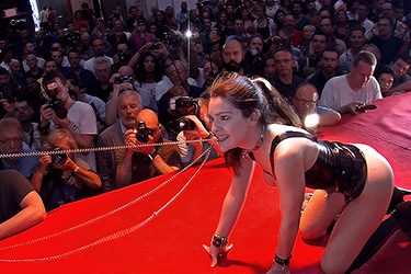 Silvia Rubi saca a la perra a pasear sobre el escenario de actricesdelporno en el SEB. Ella está empezando su carrera como ama y su perrita es de lo más lindo que hay. Se masturban juntas y hasta le ayuda a sacarse el collar de perlas del coño.