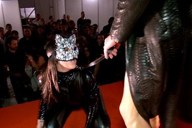 Primera entrega del Salón Erótico EROS Porto 2014 donde Pamela Sánchez es la gatita del stand de Klic-Klic. Su culazo rebotando al ritmo de sus caderas enloqueció al público luso. Alejandro Mango, con sus cueros negros fue el encargado de darle toda la leche donde más le gusta, en su cara.